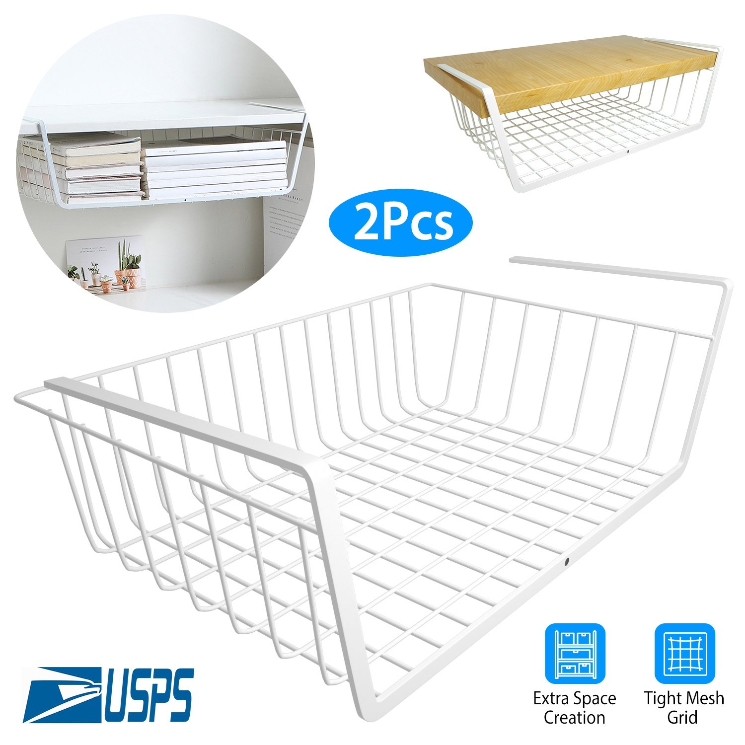 Home > 2Pcs Hanging Under Shelf Storage Basket Vertical Wire Storage Rack Kitchen Cabinet Organizer For Food Storage Dish Towel Kitchen Pantry